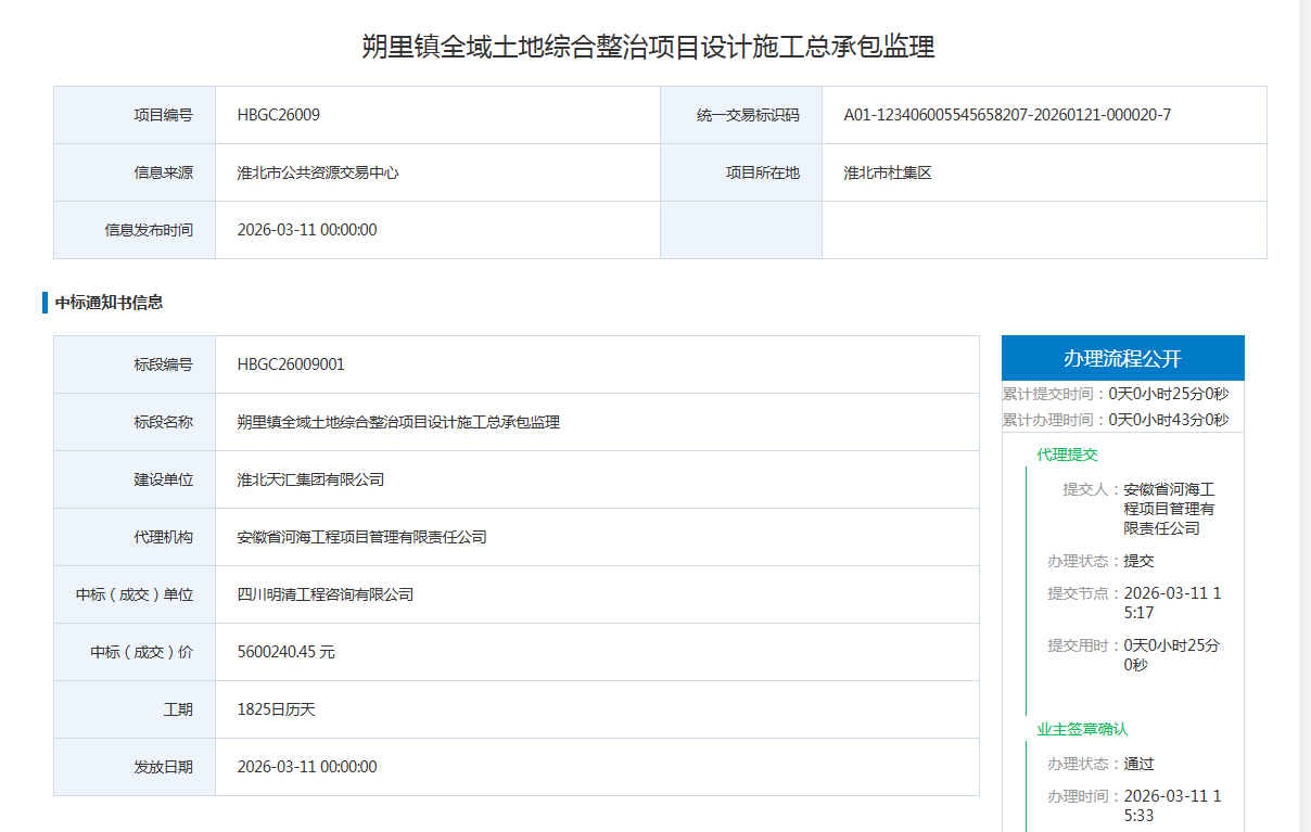 此次中标体现了明清咨询在土地整治、基础设施建设、产业园区开发等复合型项目领域的综合服务能力,进一步巩固了公司在全过程工程监理市场的竞争优势。